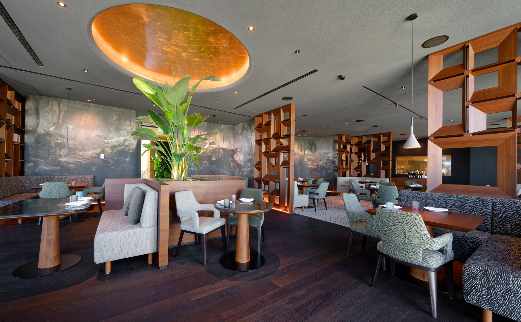 The exclusive public areas of the luxury hotel were furnished by our Tenbrink team: from custom-made joinery and high-quality wall paneling, which extends over two floors and was precisely crafted according to 3D measurements. The bar counters, decorations, and furniture for the dining concepts, including the rooftop restaurant “Greta Oto,” also come from Tenbrink.
